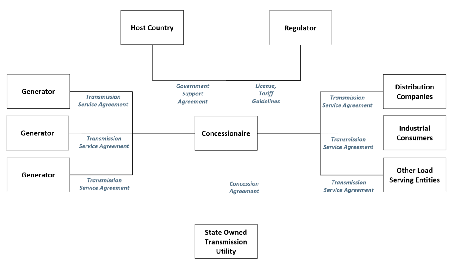 In a typical transmission concession, a state owned utility that owns a transmission system (the “grantor”) grants a concession over its transmission network to a project company established by the investors to act as the holder of the concession (the “concessionaire”). At the same time, the ministry that is responsible for overseeing the electricity sector, or the regulator, grants a transmission license to the concessionaire. In addition, the host country may enter into a government support agreement, implementation agreement, or similar agreement (a “government support agreement”) with the concessionaire to provide certain identified types of support to the transaction.